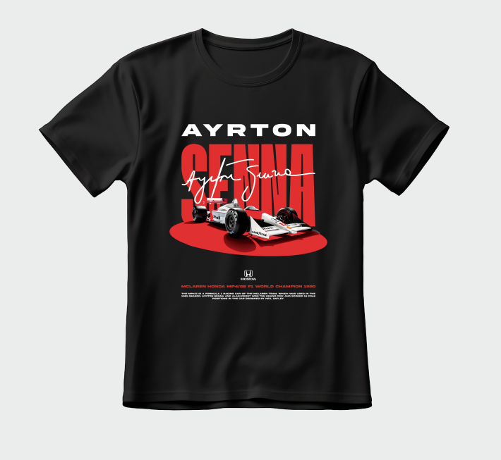 Rinde homenaje a una leyenda del automovilismo con esta franela dedicada a Ayrton Senna. Perfecta para fanáticos de la Fórmula 1 y admiradores del piloto brasileño que revolucionó el deporte motor. Confeccionada en algodón suave y cómodo, esta prenda combina estilo casual con tu pasión por los autos de carreras. Ideal para usar en el día a día, en eventos deportivos o simplemente para mostrar tu admiración por uno de los grandes campeones de todos los tiempos. Una pieza imprescindible en la colección de cualquier aficionado a la F1.